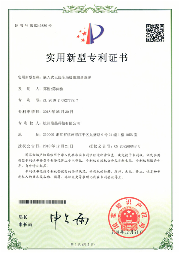 當(dāng)前位置:網(wǎng)站首頁(yè) > 關(guān)于思看 > 企業(yè)資質(zhì) > 嵌入式無(wú)線全局?jǐn)z影測(cè)量系統(tǒng)-實(shí)用新型專利