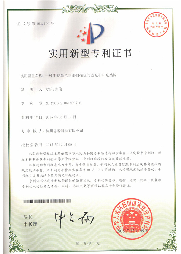 當(dāng)前位置:網(wǎng)站首頁 > 關(guān)于思看 > 企業(yè)資質(zhì) > 一種手持激光三維掃描儀的濾光和補(bǔ)光結(jié)構(gòu)-實(shí)用新型專利